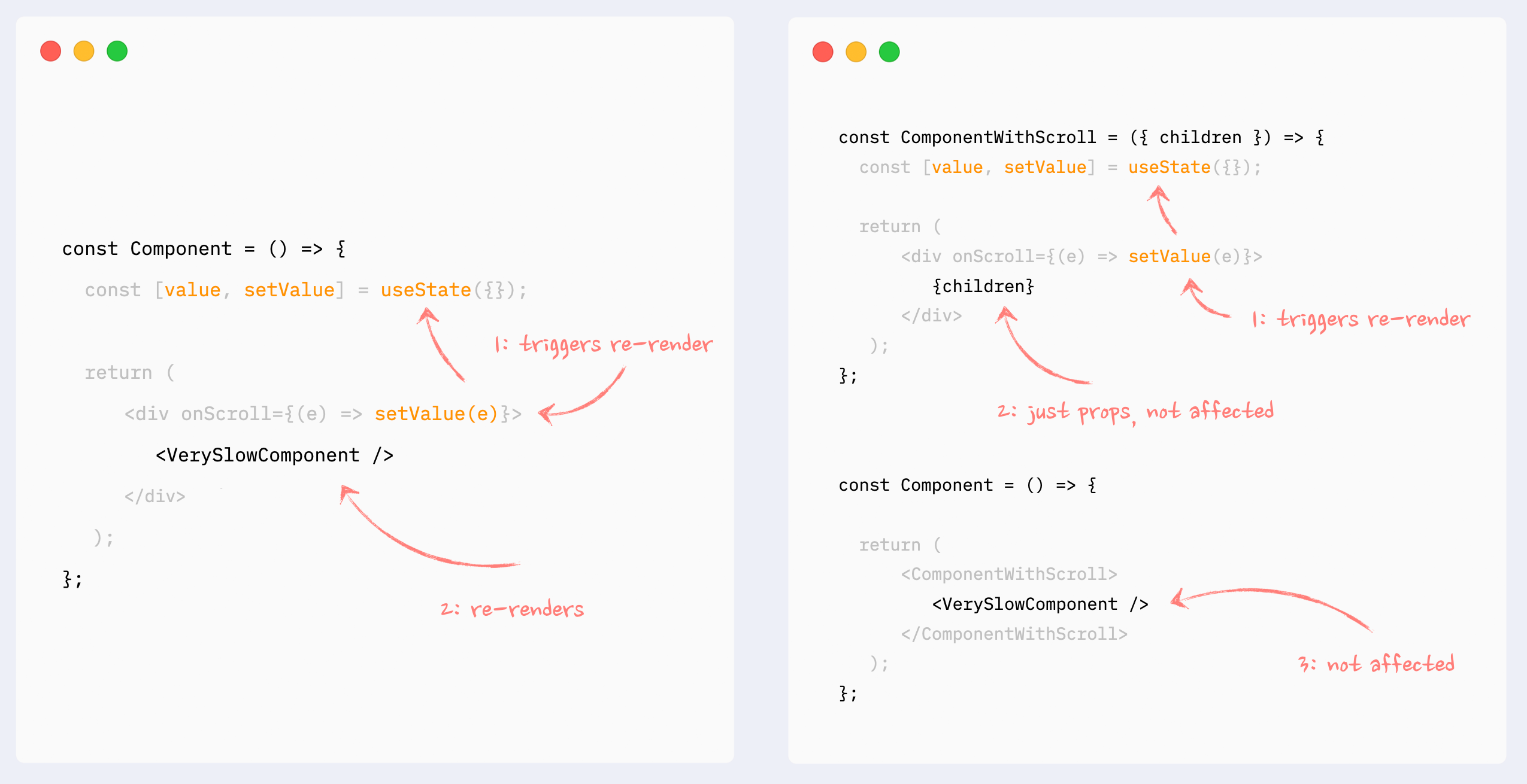 状态位置优化 | 状态向下放 / 向上提,减少无关订阅 |